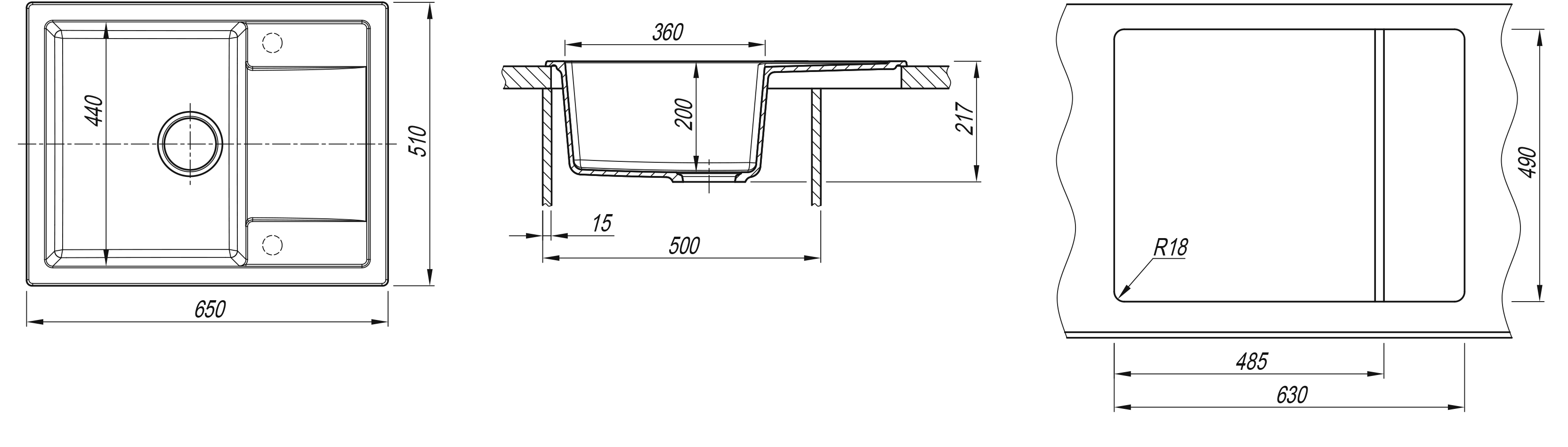 —Мойка "Техно" 650*510*217мм графит