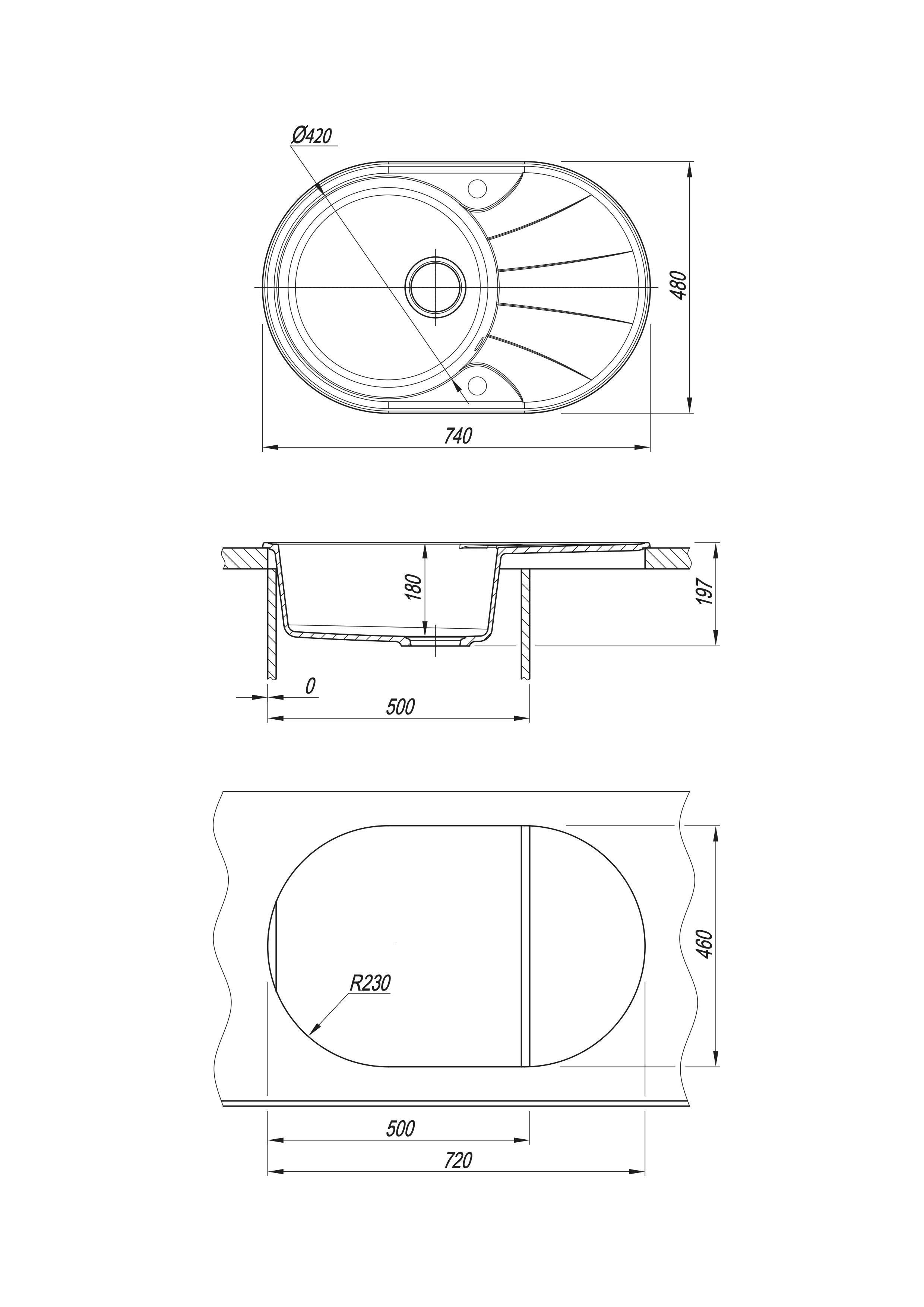 —Мойка "Виола" 740*480*180мм латте, б/сифона