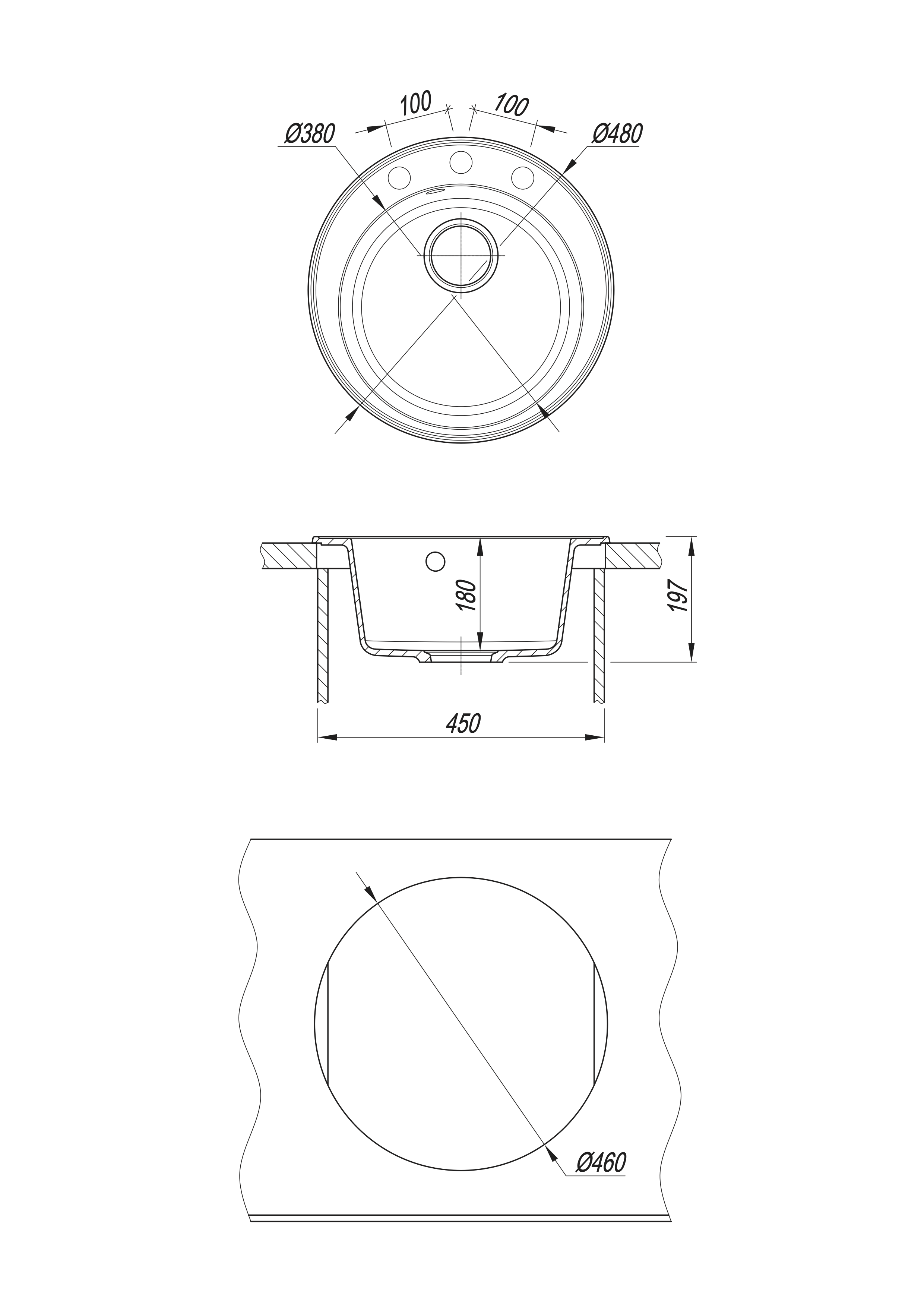 —Мойка "Пион" 480*480*180мм базальт, б/сифона