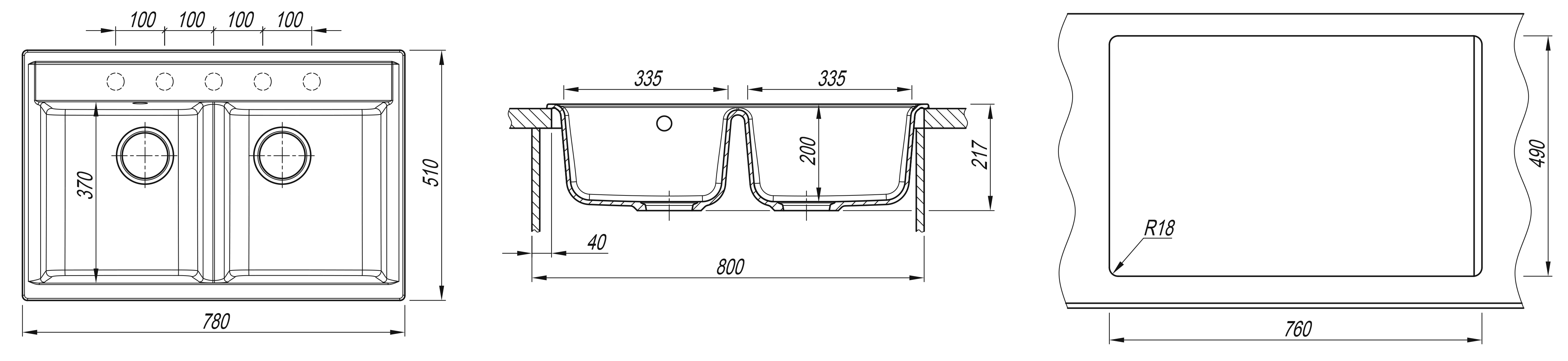 —Мойка "Астра" 780*510*217мм две чаши, белый